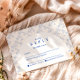 Um elegante design de celebração de formatura com uma delicada borda floral em toile azul inspirada em porcelana europeia clássica e impressões botânicas vintage. Os florais intricados enquadram um painel central arqueado limpo, criando uma composição refinada e atemporal que destaca o nome do formando e os detalhes do evento de forma linda. Tons de azul suave contra um fundo marfim crocante dão ao design um toque sofisticado e comemorativo. Perfeito para uma reunião de formatura elegante com uma estética clássica e romântica.