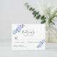 Cartão RSVP flor de folhas em estilo aquarela azul empoeirado