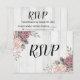 Cartão RSVP Florais Aquarela Rosa Poeirento Madeira Rústica