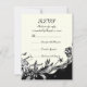 Flores brancas negras de vintage no cartão RSVP de casamento floral de marfim, apresentando uma fronteira floral branca preta de vintage sobre fundo preto e marfim.