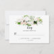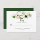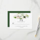 Folhas verde-escuras exuberantes combinadas com orquídeas, magnólias e proteas rei brancas em tons bege e branco em cartões de RSVP. O verso do cartão é verde-escuro.