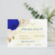 Flores ronticas reais, azuis e brancas, com ouro, deixam cartão de resposta de casamento botânico com opção de refeição. Os detalhes de brilho são simulados.