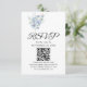 Cartão RSVP flores e folhas em aquarela azul empoeirado rústic