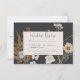 Anuncie seu casamento com um toque de elegância rústica. Nosso cativo cartão de resposta ao casamento com duas escolhas de janto apresenta um arranjo vibrante de flores silvestres e samambaias, meticulosamente desenhado à mão e lembrando tesouros botânicos pressionados. Cores ricas como bronzeado, amarelo, creme, azul e verde-sábio se destacam lindamente sobre um quadro de fundo preto de carvão suave. Os detalhes do seu casamento são mostrados em uma caixa de texto de creme nítida, garantindo clareza e elegância. Este design captivador captura a essência de um campo de flores silvestres, oferecendo uma maneira única e memorável de celebrar sua história de amor. Criado pela imprensa simplesmente de farmácia.