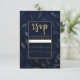 Cartão RSVP Folhas Botânicas Azul Escuro Casamento Moderno RSV