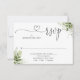Cartão RSVP Folhas Verdes Elegantes Coração em Roteiro