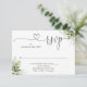 Um simples coração em roteiro de folhagem verde elegante, gentilmente responda ao cartão RSVP com seus detalhes definidos em tipografia chic. Projetado por Thisisnotme©