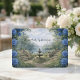 Defina o tom para o seu final feliz com este conjunto de papelaria de arte refinada. Perfeito para casais que planejam uma celebração romântica de jardim em uma propriedade ou destino.Este design apresenta um estilo de ilustração simétrica pintada à mão, representando uma grandiosa escada de pedra que leva a uma fonte central de água. À distância, uma silhueta sutil de um castelo de contos de fadas se destaca contra um céu suave com nuvens leves. A cena é emoldurada por bordas exuberantes de folhas de sage verde e oliveira, acentuadas por rosas azuis pastel suaves. O fundo simula um tom creme suave e uma tonalidade de pergaminho envelhecido, proporcionando uma tela vintage para a elegante escrita cursiva e a tipografia clássica serifada.