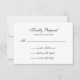 These elegant and modern wedding RSVP response cards feature a black and white with a classic layout and formal calligraphy. The back of the card is solid black with the word "Rsvp" in white calligraphy as a decorative element. This response card is perfect if you prefer to send a traditional, mail-in version to some or all of your guests.