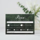 Um cartão de RSVP rústico com uma foto de fundo de uma floresta por Destei com texto de título elegante lendo "RSVP" e um subtítulo convidando os convidados a responder gentilmente até a data fornecida. São incluídos espaços para nomes dos convidados, opções de resposta e seleções de entrada com silhuetas de folhas de bordo servindo como caixas de seleção únicas para complementar o tema da floresta. Uma seção de requisitos alimentares oferece espaço para detalhes adicionais. O lado reverso apresenta uma cor de fundo verde com uma silhueta de árvore de abeto e iniciais personalizáveis e data do casamento. Uma combinação perfeita para casamentos ao ar livre, floresta, caminhadas ou inspirados na natureza.