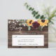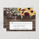 Cartão RSVP Girassol e Rosas Borgonha Madeira Vermelha Rústica