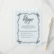 A romantic coquette bow RSVP card with a blue colored background and coordinating blue stripe back—perfect for playful, modern wedding stationery with a feminine touch.