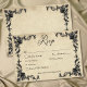 Celebrate your love in the grandeur of Gothic romance with our captivating wedding response card with dinner options. Embrace the dark allure and timeless elegance with our black three-dimensional filigree gothic corner borders, enveloping bold black text against a vintage Victorian aged tan parchment background. This design exudes a mysterious charm, perfect for couples seeking to infuse their wedding day with an air of dramatic sophistication. The intricate details of the filigree heart frame add depth and texture, creating a mesmerizing focal point that captures the essence of your unique love story. Created by Simply Farmhouse Press