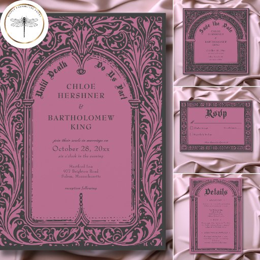 Abraçar o romance eterno com o nosso cartão de resposta do casamento Gótico medieval com escolhas jantes, onde o amor e a escuridão entram em harmonia elegante. Um design preto e burguês impressionante enquadra seu anúncio com um intricado filigre floral medieval que lembra catedrais antigas e manuscritos com tinta manual. No topo, uma fonte ao estilo vintage que evoca um encanto do mundo antigo define o tom vintage. Perfeito para casais que ousam celebrar o amor com profundidade, drama e devoção duradoura. Criado pela imprensa simplesmente de farmácia.