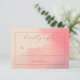 Este cartão de resposta para casamento apresenta um fundo quente e gradiente que transita de um tom suave de pêssego para laranja-rosado, criando uma atmosfera convidativa e elegante. O design inclui uma mistura de tipografia cursiva e sans-serif limpa, oferecendo uma aparência moderna e clássica que equilibra sofisticação e simplicidade. Com linhas personalizáveis para respostas e o número de convidados, é funcional e estiloso, perfeito para eventos formais. A abordagem minimalista enfatiza clareza e legibilidade, tornando-o ideal para casais que buscam uma maneira polida e cortês de coletar informações dos convidados.