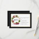 Cartão de confirmação de presença para casamento com guirlanda de madeira de uvas e videiras em aquarela moderna e elegante, inclui rosas burgundy, rosas cor-de-rosa, rosas vermelhas e folhagens botânicas. Fundo preto com moldura dourada.