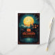 This vibrant artwork captures the perfect spooky vibe — a glowing full moon, eerie haunted houses, flying bats, and a mischievous pumpkin that sets the stage for your Halloween celebrations.