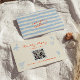 A simple and elegant calligraphy colorful retro wedding rsvp card. As you see it has a vintage modern creamy background with orange hand written script and sky blue hand painted elements . And scannable QR Code in the center. You can edit it by clicking on the personalize button.