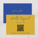 A simple and elegant calligraphy colorful retro Italian wedding scannable QR Code rsvp card. As you see it has a vintage modern yellow background with blue hand written script. And blue background on the back. You can edit it by clicking on the personalize button.