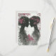 Cartão-resposta de casamento fofo para casal lésbico, LGBTQ. Duas noivas desenhadas à mão, silhuetas rosa e preta, frente a frente com detalhes de folhas cor-de-rosa. Elas têm o cabelo preso e rosas cor-de-rosa nos cabelos, desenho a lápis fofo para o seu dia especial.