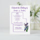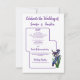 Este cartão RSVP de cor d'água da íris na moda púrpura pode ser personalizado com seus próprios títulos e informações sobre resposta, viagem, acomodação, preferências de comida e dados de presente e registro, bem como um cartão na parte traseira para que o pessoas envie uma resposta pessoal. Essa placa RSVP pode ser acoplada a convites acrílicos e de velum que não têm espaço para essas informações adicionais. A design é moderna, simples e gráfica, com bordas macias e arredondadas. Uma série de papéis de carta de casamento e suprimentos coordenados também está disponível usando esta design