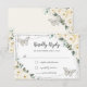 Cartão RSVP Ivyory Branco Floral Prata Quinceañera Borboletas
