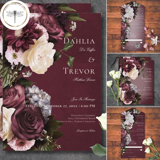 Entra num reino de elegância refinada com o nosso cartão de resposta floral escuro e humorístico ao casamento com opções jantes. Concebido para cativar os sentidos, este convite apresenta um fundo arrojado impressionante, adornado com uma rotura espantosa de ricas rosas de burgundy e creme, hífenes de cinzas de lavanda pálidas e outros florais mistos em branco suave e rosa pálido, complementados por uma folhagem verde-oliva exuberante. O texto cremoso flutua delicadamente sobre um borrão de luz suave, adicionando um toque de romance ao fascínio geral. Abrace a opulência da estação e dê o tom para o seu dia especial com este design, que deixa uma impressão duradoura nos seus convidados. Criado pela imprensa simplesmente de farmácia.