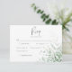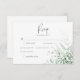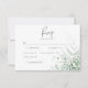 Elevem seu dia de casamento com a beleza eterno do nosso delicado cartão de resposta de casamento verde com opções jantes. Contra um fundo branco pristine, caules soltos de samambaias de aquarela verde macia que se criam graciosamente do lado esquerdo, uma exibição elegante e elegante da graça da natureza. Este design capta a essência da elegância orgânica, prometendo encantar seus convidados e dar o tom perfeito para seu dia especial. Deixe sua história de amor se desenrolar no meio da exuberante tranquilidade da natureza. Criada pela "Simply Farmhouse Press", faz parte da coleção de casamento Delicado Delicado Greenery Ferns.