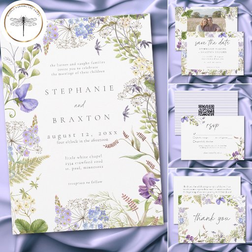 Anuncie seu dia com este cartão de resposta de casamento romântico Jardim de Flores Silvestres de Lavanda com um código QR, apresentando flores delicadas em aquarela em um fundo roxo lavanda claro. Perfeito para um casamento de jardim na primavera ou verão, este lindo design oferece uma estética caprichosa e natural. Este convite romântico é totalmente personalizável e define um tom suave e adorável para sua celebração. Criado por Simply Farmhouse Press.