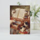 Cartão com a pintura de óleo de Carl Reichert Considerando (1836-1918). Cinco gatinhos brancos e pretos adoráveis se sentam em um piano. Um presente fantástico para amantes de gatos e entusiastas de arte vitorianos.