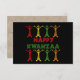 Quatro dançarinos dançarinos em vermelho, azul, verde e amarelo entre as palavras "Happy Kwanzaa" para ajudar a celebrar o sentido de comunidade, família e novos começos do ano que vem.
