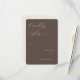 This elegant wedding RSVP card features a sophisticated brown background with an understated, yet stylish script typography that adds a touch of timeless charm. The design is minimalist and modern, focusing on clean lines and ample space for personalization, making it perfect for couples who prefer a refined and classic aesthetic. With its simple color palette and graceful layout, this card exudes warmth and sophistication, ideal for capturing the joyous anticipation of your special day. It’s easy to customize, allowing you to seamlessly integrate into your wedding stationery suite.