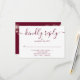 Um elegante cartão de RSVP de script de assinatura burgundy moderno com seus detalhes definidos em tipografia chic e luzes de corda bonitas no verso. Projetado por Thisisnotme©