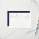 Um elegante cartão de resposta RSVP azul marinho e coração de letra dourada com seus detalhes em tipografia chic. Projetado por Thisisnotme©
