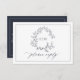 Cartão RSVP Marinho de Código QR Blue Leafy Crest Monograma Ca