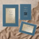 Cartão RSVP Marinho Dourado Retângulo Floral Boho Casamento