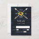 Marinho Girassóis Flores solares Casamento chic-country de madeira em celeiro RSVP Cartão com flechas cruzadas e buquê de girassol