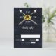 Cartão RSVP Marinho Girassóis Flores do mar Casamento Chic Cou