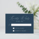 Cartão RSVP de casamento minimalista e moderno, com data RSVP e texto de aceitação/declinação personalizado. "Responder gentilmente" é exibido em um script de caligrafia branca com um fundo de marinho sólido ou cor de sua escolha. Projetado para coordenar com a nossa coleção de casamento do Modern Elegance.