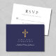 Cartão RSVP de Primeira Comunhão do Marinho Cruzado Religioso Personalizado
