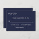 Esta elegante placa RSVP azul marinho é perfeita para um casamento moderno. a simples design apresenta uma caligrafia branca elegante sobre um fundo azul marinho.