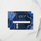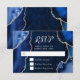 Cartão RSVP Mármore Azul Naval e Ágata Prateada