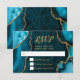 Cartão RSVP Mármore Azul Teal e Ágata Dourada