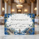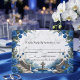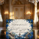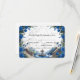 Leve seus convidados a uma mansão romântica à beira de um lago. Este elegante cartão-resposta apresenta flores em aquarela em azul profundo e uma vista de um jardim pitoresco para definir o tom. Este design apresenta uma ilustração simétrica e serena em aquarela de uma grandiosa escada de pedra que leva a um lago tranquilo, completo com cisnes brancos graciosos e um pequeno barco de madeira. A cena é emoldurada por arranjos de canto exuberantes de rosas azuis reais e azuis-marinho, acentuados com sombras cinza-frio e folhagens verde-muito-claro. O fundo utiliza um efeito de pedra de mármore macio e impresso para adicionar profundidade e sofisticação sem o custo de papelão pesado. Esta é uma imagem impressa plana com efeito de mármore falso, não uma pedra ou textura real em relevo.