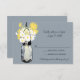 O cartão RSVP é perfeito para um casamento no estilo country ou talvez você apenas ame Mason Jars! Mason Jar pendurado num gancho cheio de flores selvagens do campo. Um fundo de Cinza Legal (04:2:9) contra as cores enforcadas do Mason Jar e das flores silvestres dos amarelos e das margaridas brancas. Se você tiver alguma dúvida sobre este design ou quiser uma mudança de cor, envie um e-mail para mim paula@labellarue.com Além disso, verifique se os Cartões SENTADOS RSVP, RECEPÇÃO e CONVIDADO correspondem!