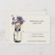 Correspondente ao cartão RSVP para um chá de panela estilo country ou talvez você apenas ame Mason Jars! Vintage Mason Jar pendurado num gancho com flores selvagens do campo. Uma maravilhosa cor de fundo creme com desenho preto de um Mason Jar preenchido com flores silvestres amarelas (7403) e EGGPLANT (7448) coloridas. Se você tiver alguma dúvida sobre este design ou quiser mudar de cor, envie um email para paula@labellarue.com