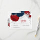 Vermelhos escuros românticos e flores azuis marinhos com folhas prateadas cartão de resposta do casamento botânico. Os detalhes de brilho são simulados.
