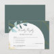 Responda em estilo com este elegante design de eucalipto, com aquarela verde e acentos sutis de ouro impressos. A folhagem orgânica cria um aspecto fresco e natural, enquanto os detalhes do ouro trazem um encanto eterno refinado. Perfeito para casais que desejam uma suíte de casamento coesa, este modelo pode ser personalizado com seus detalhes e coordenadas lindamente com convites, Salve as Datas, menus e outras peças correspondentes.