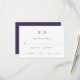 Esses cartões de resposta RSVP de casamento elegantes e modernos (com a escolha da refeição ou da entrada listada) apresentam um simples design de texto roxo escuro e branco que exude o estilo minimalista. Adicione suas iniciais ou monograma para torná-las completamente suas.