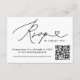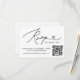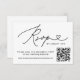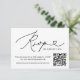 Modern and minimal black and white wedding response card design features your custom QR code and wedding website so guests can reply online rather than mailing back a card. Black text and white background color can be updated to coordinate with your wedding color scheme.